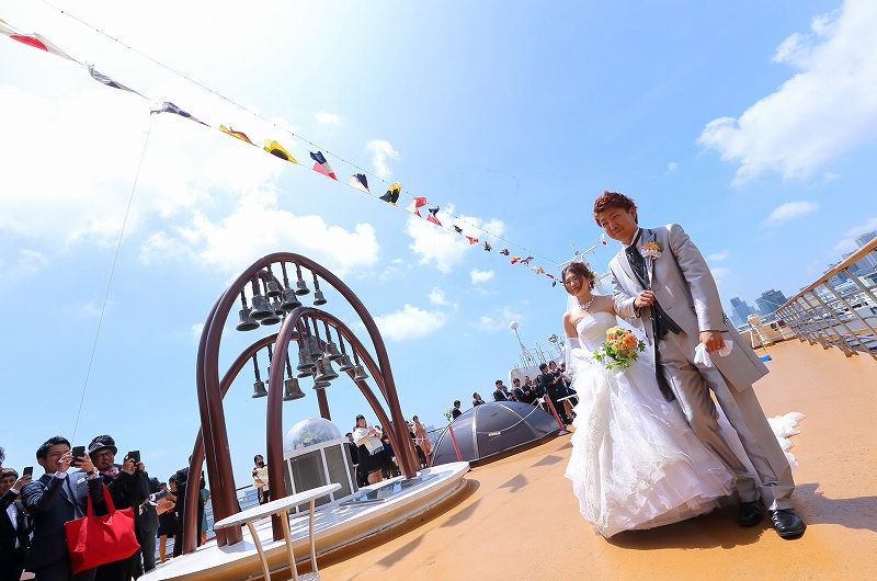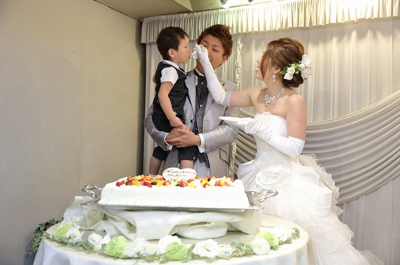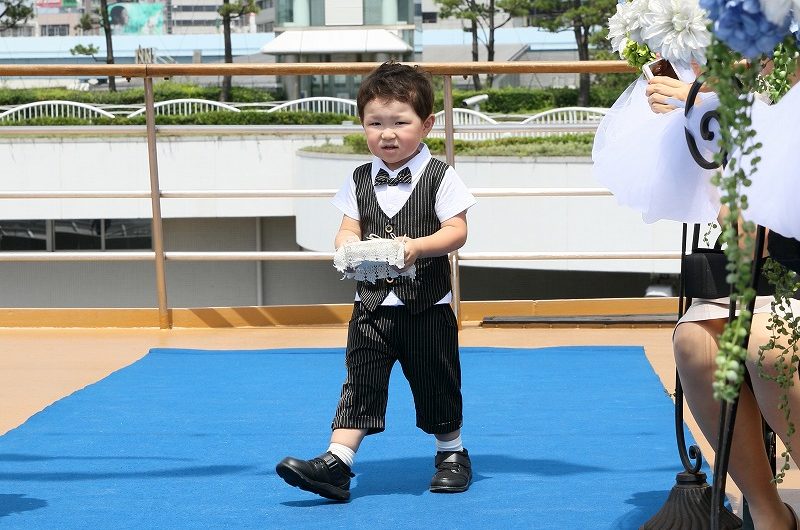 挙式ではご新婦様のお父様も一緒に歩いていただき