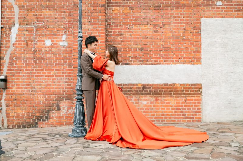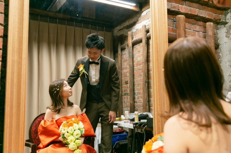 ご自身でご用意されたテラコッタオレンジのドレスが