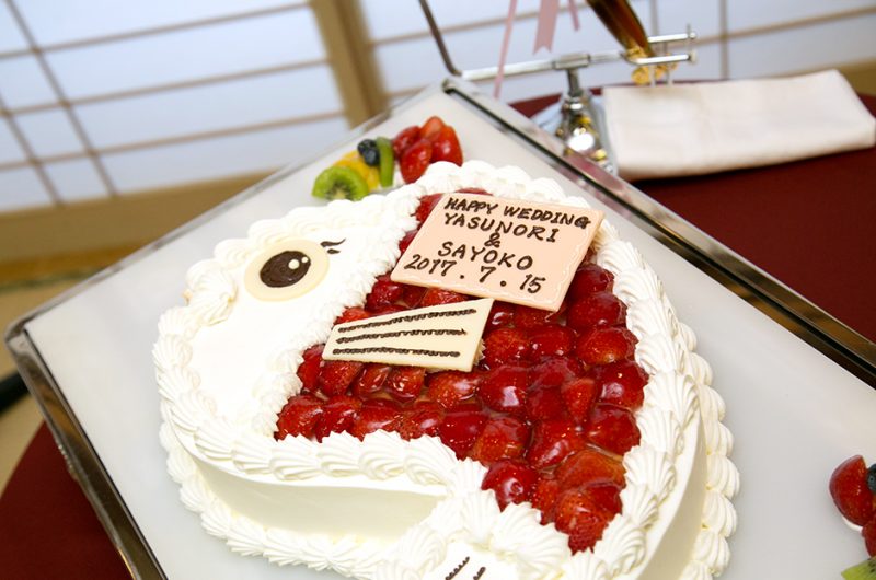 ケーキ入刀ではお2人がお選びになった鯛ケーキのデザインに皆様大注目でございました。