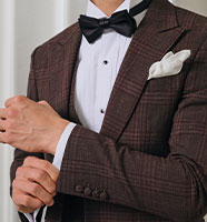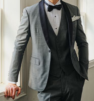 結婚式の新郎が着用する洋装衣装は、タキシード、モーニングコート、フロックコート、テールコートの4種類があります。ほとんどの花婿がタキシードを選びますが、本来は夜間着用する「準礼装」という位置づけのものです。選び方ですが、タキシードの色はホワイト、シルバー、ブラックなどが人気で、さらに組み合わせるタイの種類や色により豊富なバリエーションとなります。もちろん、花嫁のドレスとのバランスを意識してタキシードを選ぶことが大切です。