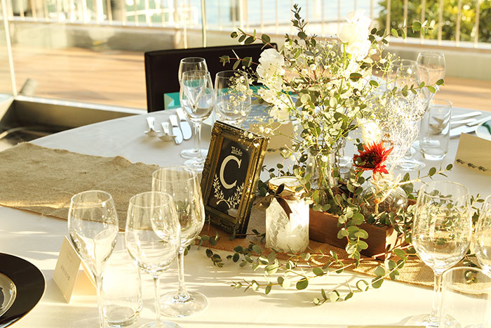 花の量を抑えたい場合は、グリーンや小物を上手に取り入れるのもひとつの方法です。グリーンは装花と相性が良く、空間に自然な広がりを持たせてくれます。さらに、花器やキャンドルを添えると、少ない装花でも印象的なコーディネートが叶いますよ。