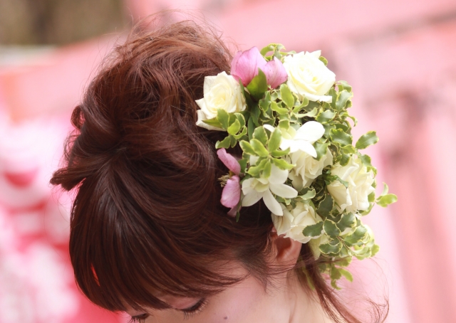 また、ティアラやパールピンを合わせると、よりロマンチックで気品あふれる雰囲気に。まるで童話のなかのプリンセスのように、優雅な姿を演出できます。
