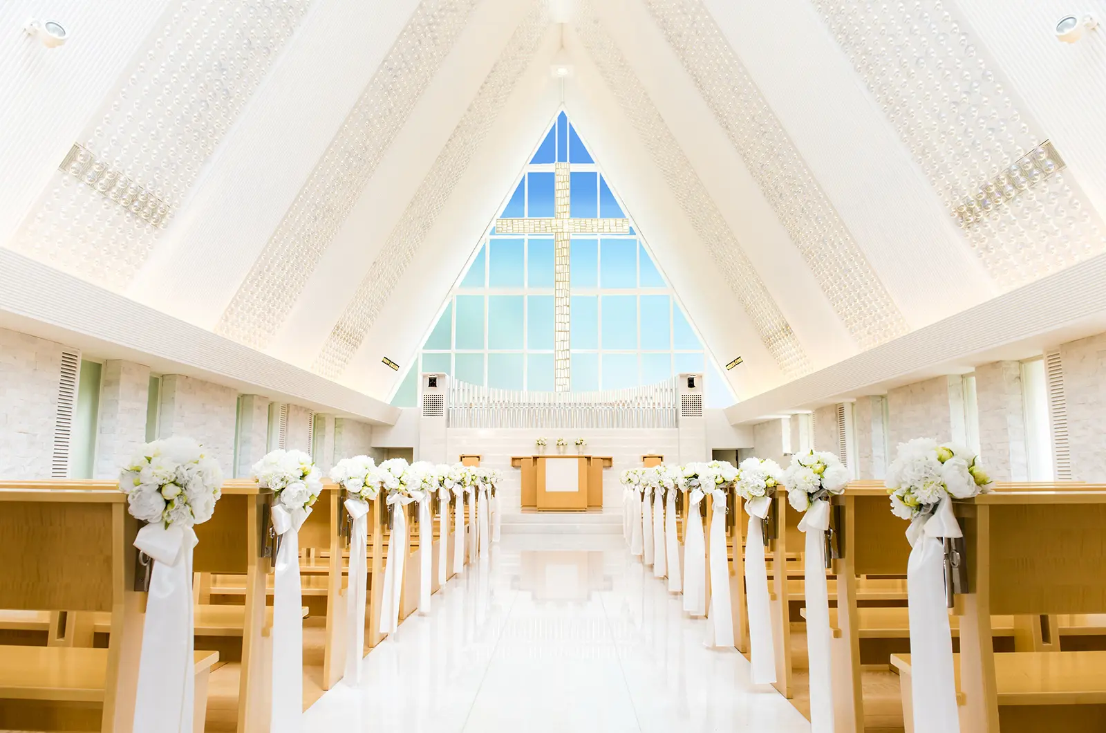 やわらかな自然光に満ちた独立型チャペルで空を感じるウェディングを