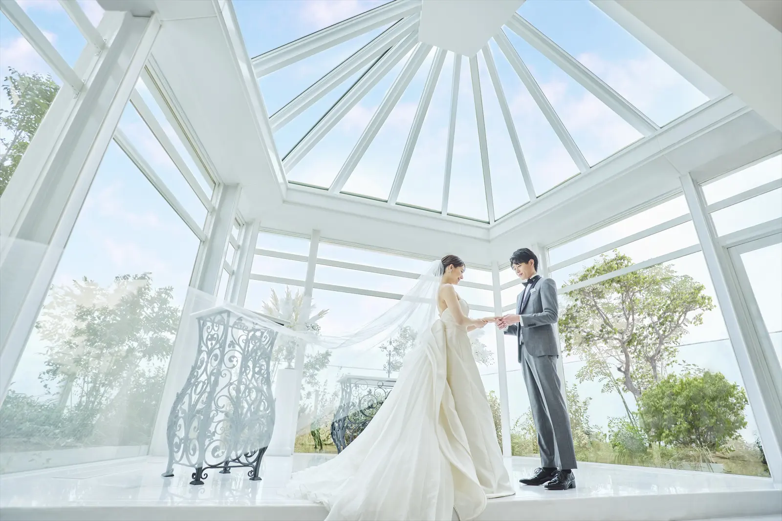 大阪・梅田から約20分のリゾート空間「アートグレイス ウエディングコースト」。6000坪もの敷地には白亜の大聖堂と5つの洗練された貸し切り邸宅が。大聖堂「クリスタルチャペル」は、自然光が降りそそぐガラス張りの祭壇と大理石でつくられた20mのバージンロードが特徴。遮るものの何もない空を目の前に、永遠の愛の誓いを。挙式後は、スタイルの異なる5つの邸宅でプール付きガーデンやリビングまですべてを貸し切って動きのあるパーティを。まるで海外リゾートにいるかのような開放的なひと時が実現。