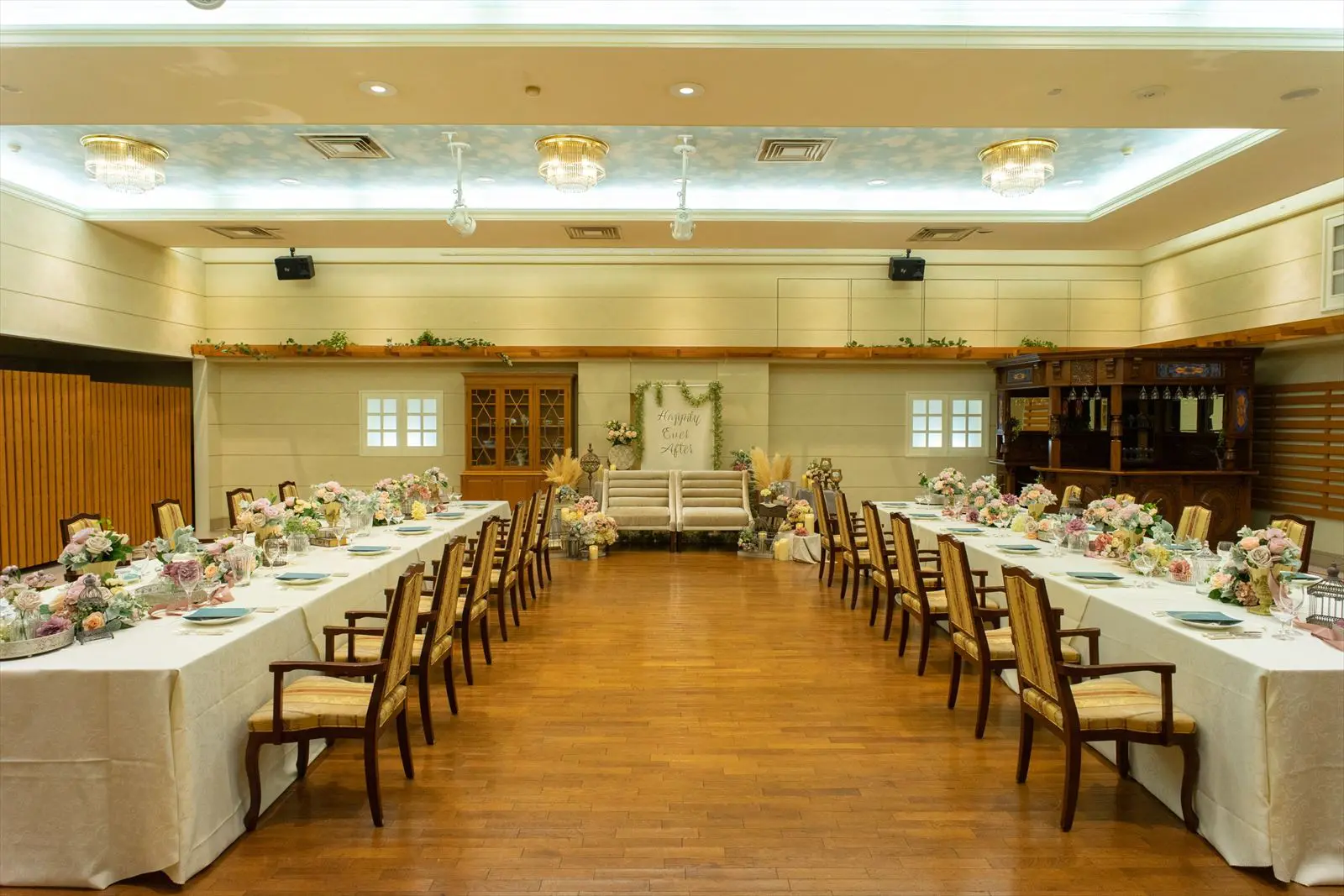 - ゲスト控室, 新郎新婦控室, 親族控室, 美容着付室, 更衣室, ベビーベッド, 授乳室, 音響, マイク, DVD, CD, 照明, VTR, プロジェクター, スクリーン, ピアノ, 宿泊施設(提携含む), クローク, 駐車場, 喫煙室