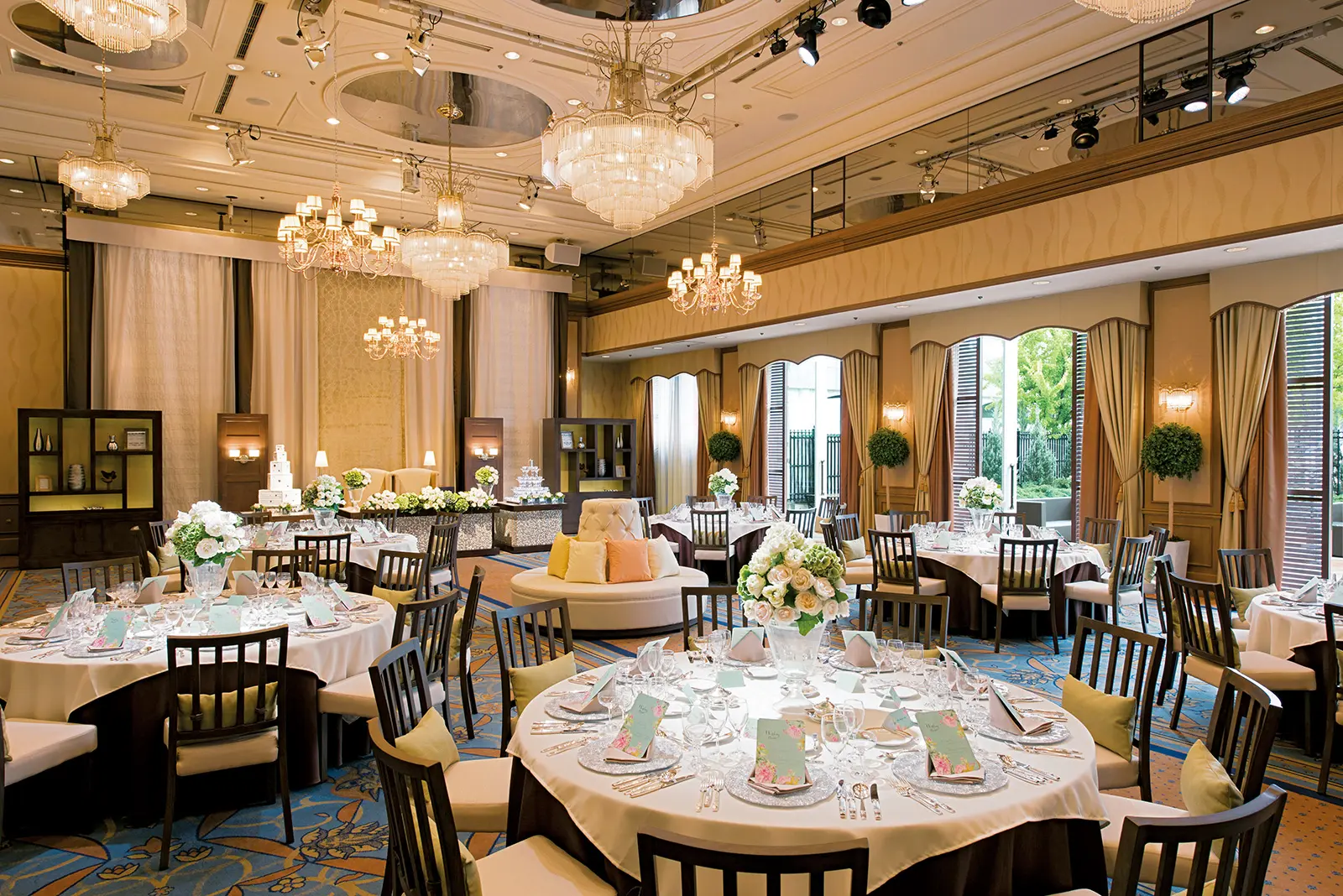 つくば駅より徒歩2分。つくばのシンボル的存在の「ホテル日航つくば」。北イタリアの城壁に囲まれたベルガモの教会をイメージしたチャペル「アポロン」は、“四弁花(しべんか)”の文様が列柱に施され明るい空間。挙式後のパーティは多彩な会場からふたりらしい空間をセレクト可能。優美なクラシック&モダン空間の「昴西の間」は古き良き時代の上質な「輝きのとき」を伝統的なモチーフと現代的な解釈で表現。お料理は素材や全体のバランスにこだわり、一皿ひとさらに驚きが隠されたフレンチでゲストのおもてなしを。