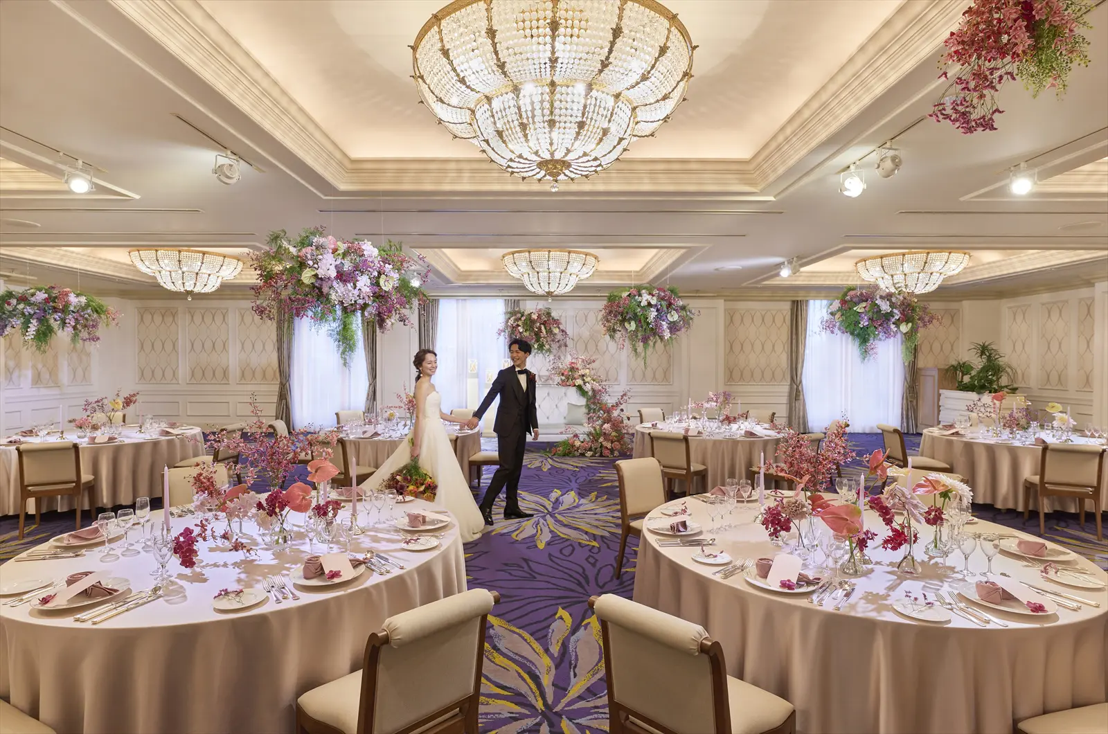 ナチュラルさやリゾートの空気感を感じられるリラックスしたパーティースタイルが叶う「ウィンザー」。 シャンデリアが煌めく「エリーゼ」や少人数向けの「アイリス」など多彩なバンケットがそろう。