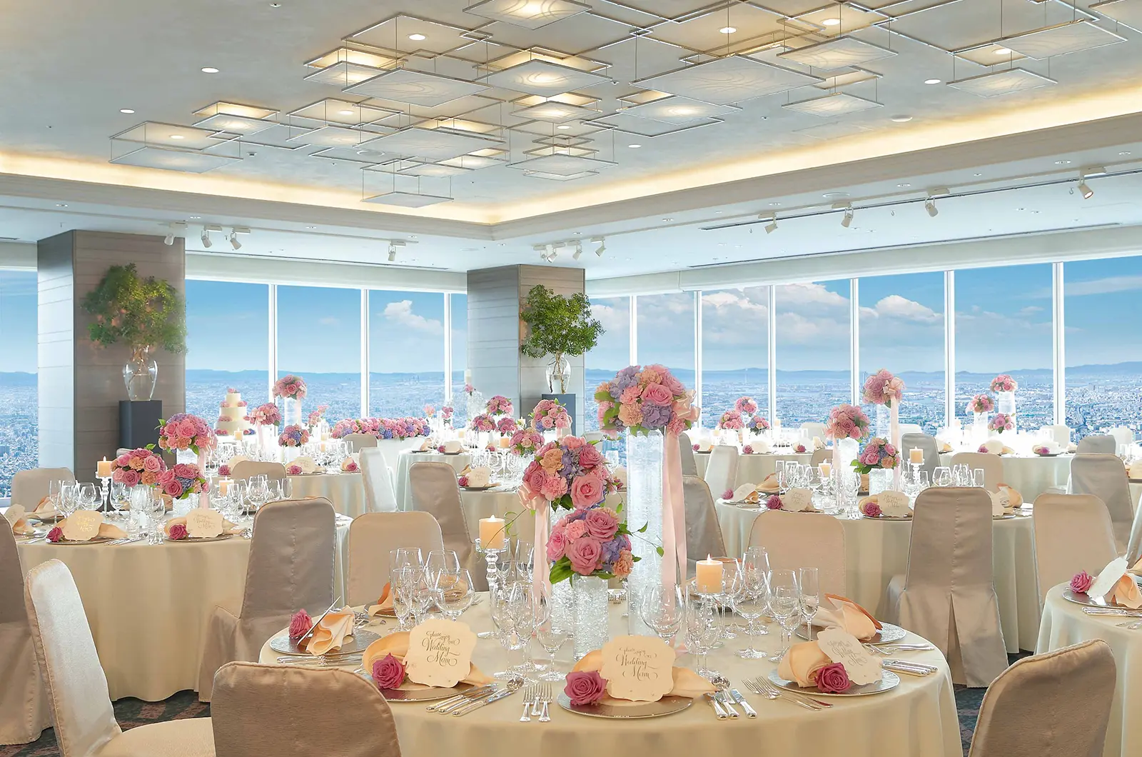 ミナミエリアの中心地である天王寺駅より徒歩1分。超高層複合ビル「あべのハルカス」内、関西で初めて開業されたマリオットブランド「大阪マリオット都ホテル」。ホテル内のバンケットは大阪市内を一望することができる地上100mの絶景空間。真っ青な空が広がるダイナミックな眺望やロマンティックに輝く美しい夜景が楽しめるウエディングパーティは、ゲストへの何よりのおもてなしに。贅沢な食材を使用したウエディングメニューやラグジュアリーブランドホテルならではの上質なサービスに彩られた特別な1日にふさわしいひと時を。