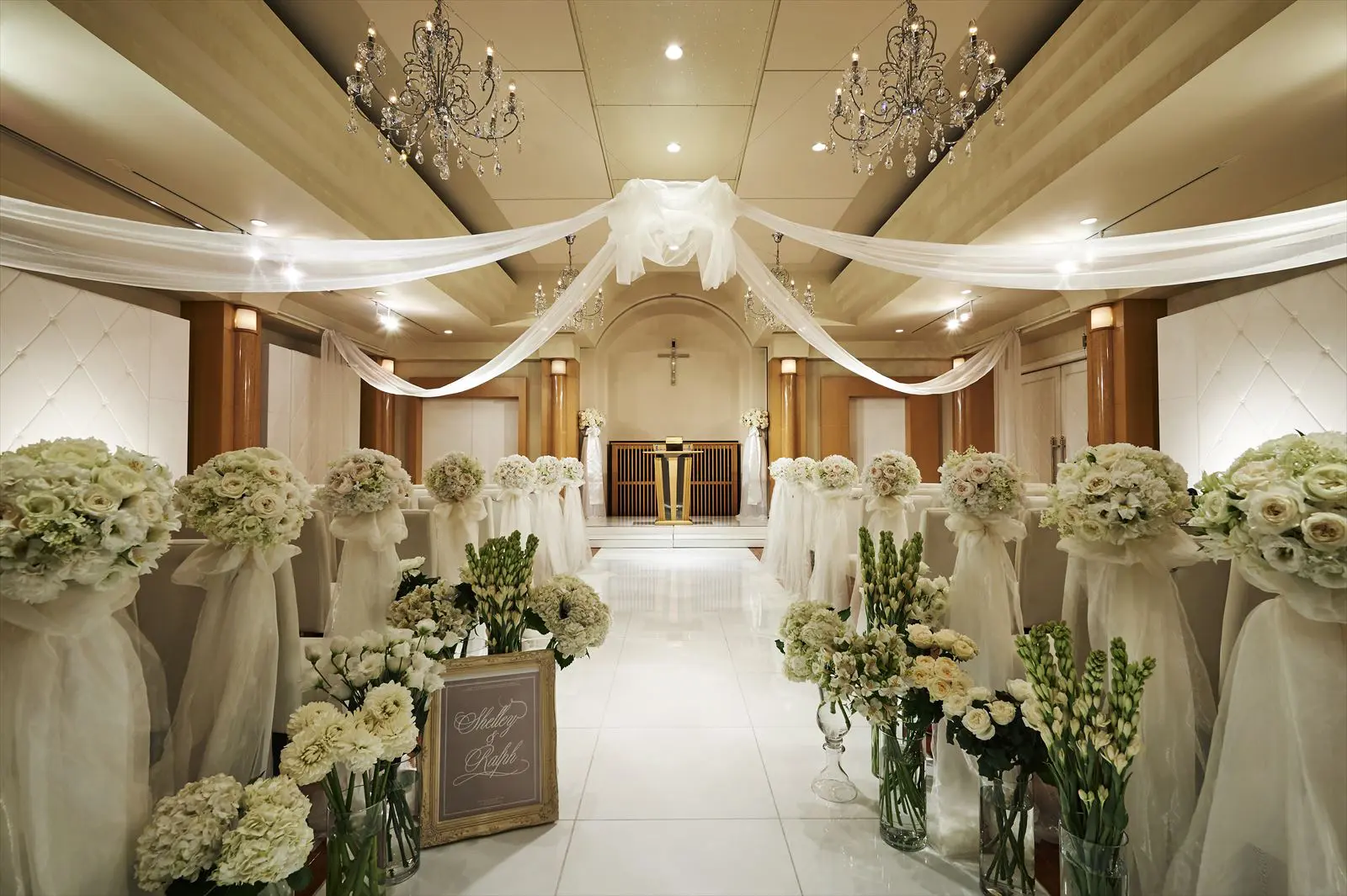 福岡・天神の中心地にあるソラリアプラザの高層階に位置する「ソラリア西鉄ホテル福岡」。西鉄福岡(天神)駅、天神高速バスターミナルに直結し、県内外からのアクセスが自在。”FASHIONABLE”をテーマにした、華やかでスタイリッシュなウェディングが叶う。スワロフスキーのシャンデリアが輝くホワイトチャペル「スピカ」での挙式は、ゲストの頭上を流れ星が流れてスタート。バンケットも多彩で、ゲストの人数やスタイルに合わせたパーティが可能。創業当初から受け継がれている、フランス料理がベースの西洋料理でおもてなしを。