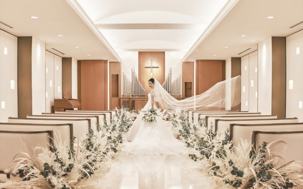 神殿での神前式をはじめ、和装での披露宴など、「和」テイストの結婚式が人気です。